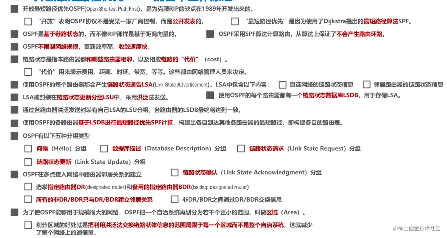 注意:OSPF 只是一个协议的名字,它并不表示其他的路由选择协议不是“最短路径优先”。