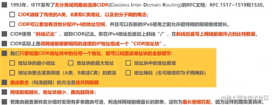 无分类编址CIDR,使用变长的子网掩码,进一步提高IP地址的资源利用率。