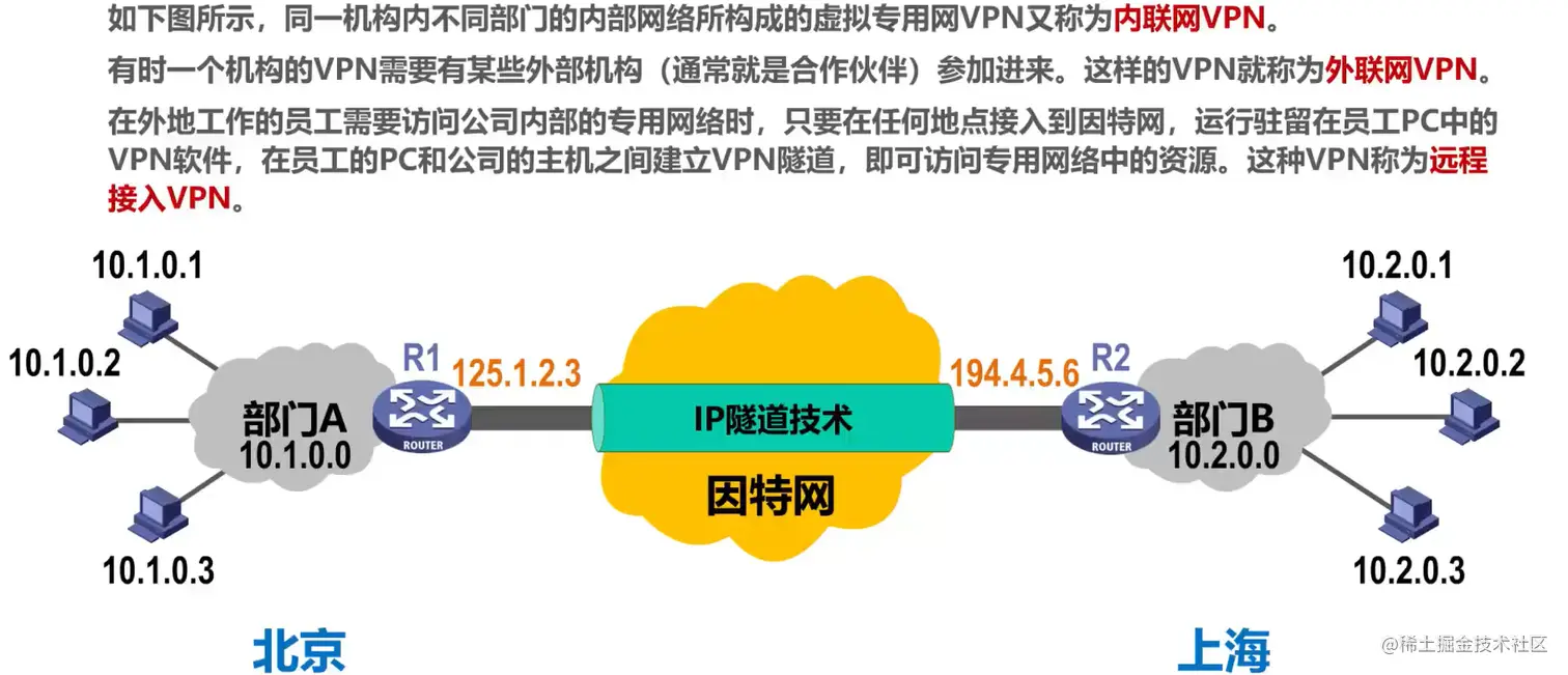 一个机构至少需要有一个路由器有合法的全球地址,从而实现不同的机构之间通信,两个专用网内的主机间发送的数据报是通过了公用的因特网,但在效果上就好像是在本机构的专用网上传送一样