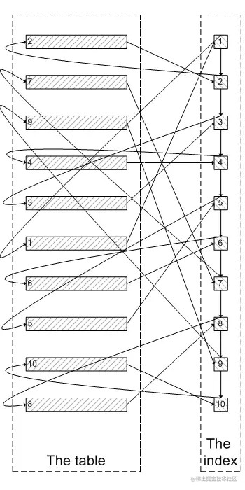 先通过where条件提取出主键,在将该表与原数据表关联,通过主键id提取数据行,而不是通过原来的二级索引提取数据行