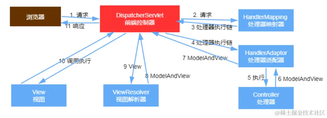 SpringMVC执行流程: