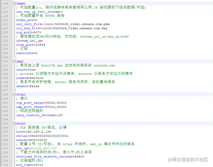 首先查看easycvr.ini配置文件。用户已配置了收流地址,但视频还是无法播放。