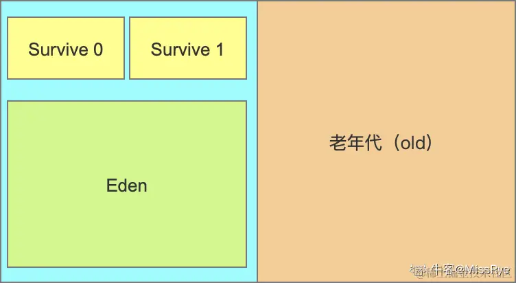 实际的GC,是把堆进行了划分。其中Young区,S0:S1:E=1:1:8,默认的配置,符合对象“朝生夕死”的规律。模型如下: