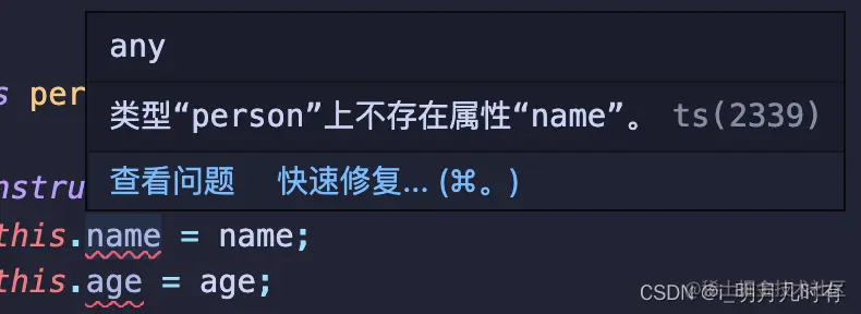 这时候ts会提示,你特么都没有这个属性,你让我构造器创造这个属性,你逗我呢?所以正确的写法是下面这种。
