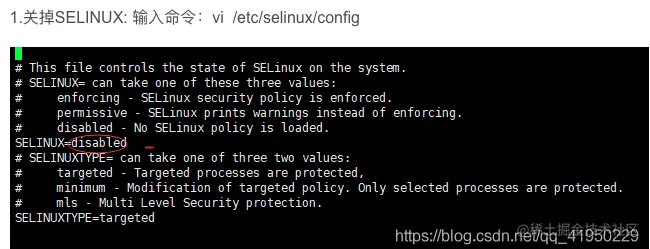 2⃣️关掉SELINUX: 输入命令:vi /etc/selinux/config