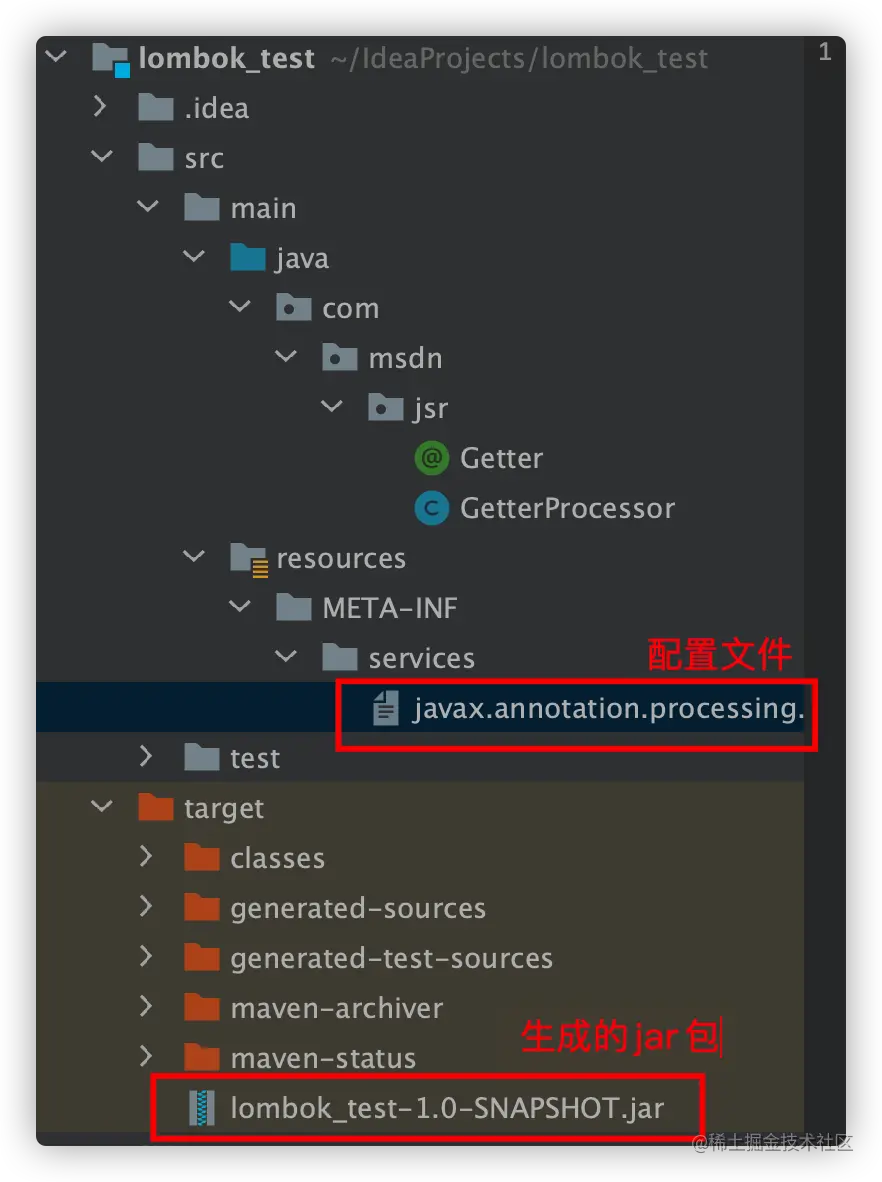 详细步骤还是参考 《自定义Lombok详解》,这里看一下个人的测试项目结构。