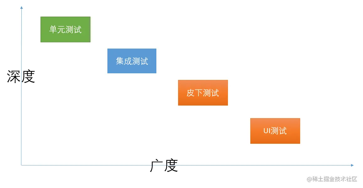 纵轴代码测试的深度,横轴代表测试的广度(覆盖度)。