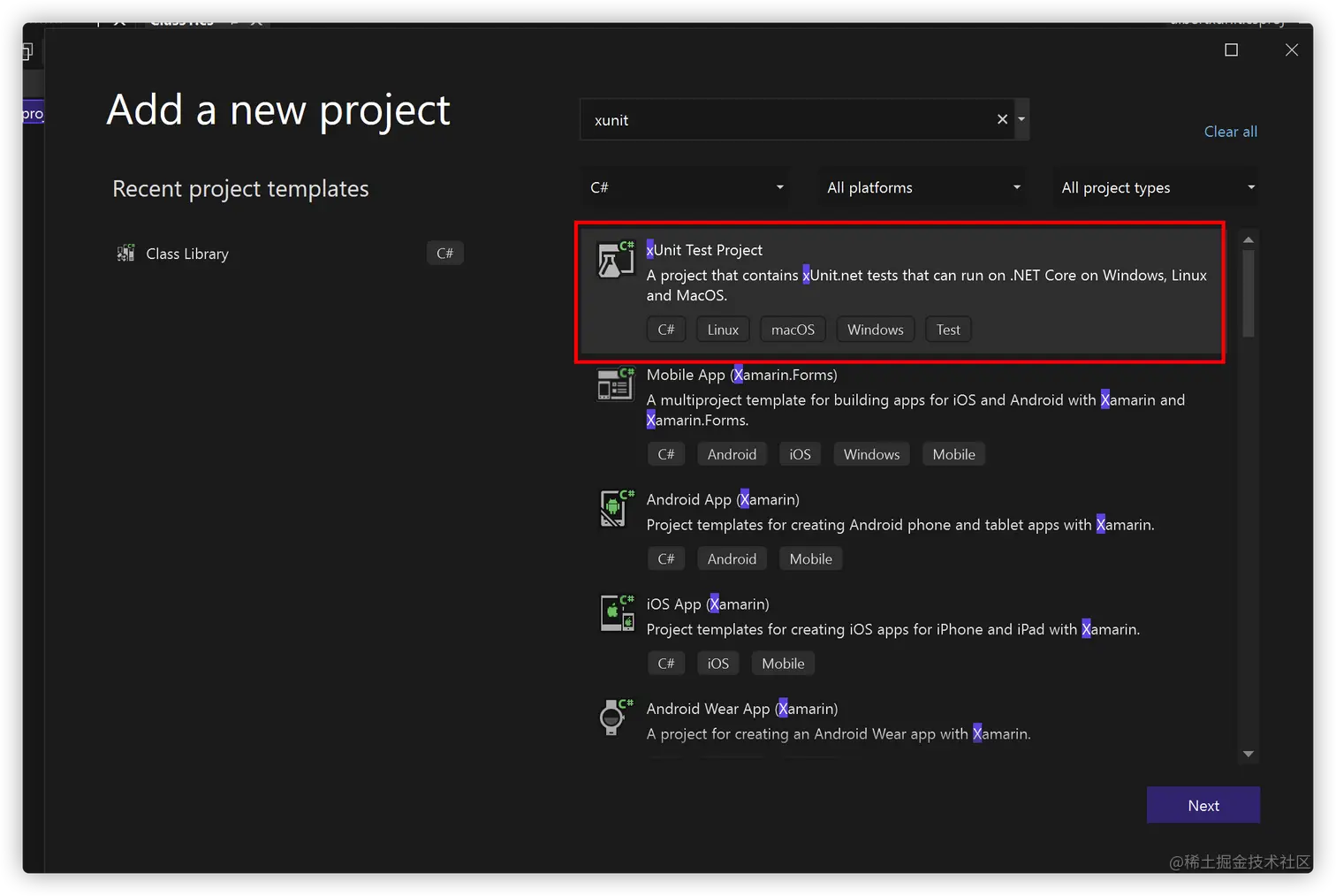 xUnit是一个测试框架,可以针对.NET或.NET Core项目进行测试。测试项目需引用被测项目和xUnit库。测试用例编写好后,用Test Runner来运行测试。目前可用的Test Runner包括vs自带的Test Explorer或者dotnet test命令行,以及第三方工具(resharper)等。各参数的含义:docs.microsoft.com/zh-cn/dotne…