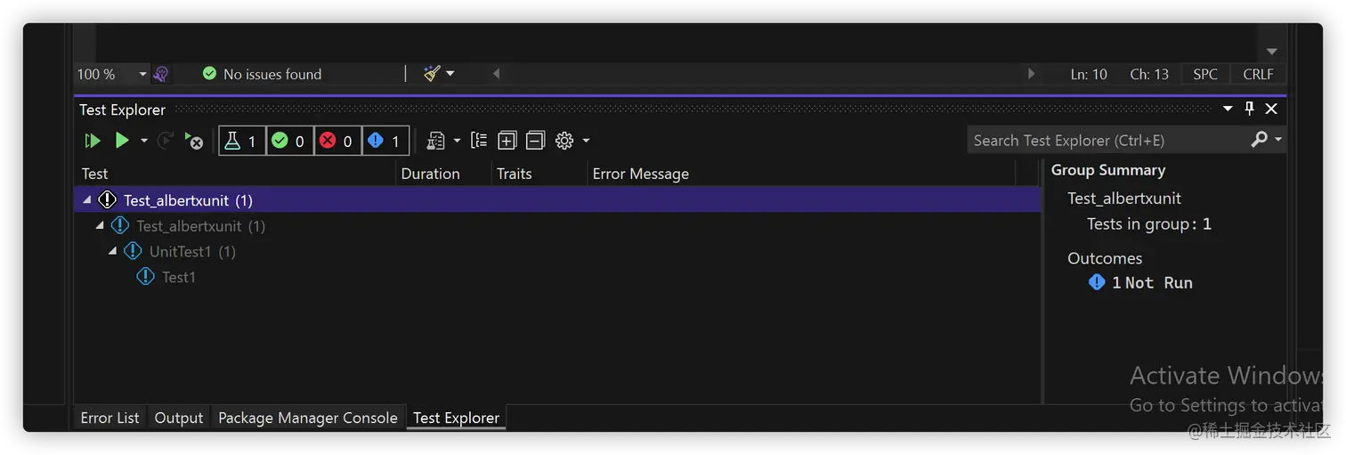 - 引用待测项目,从Test Explorer可以看到待测项目