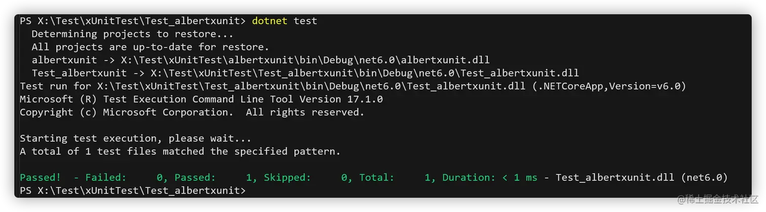 - 创建xUnit Test项目(albertxunit.Test) (dotnet new xunit -n test_albertxunit)