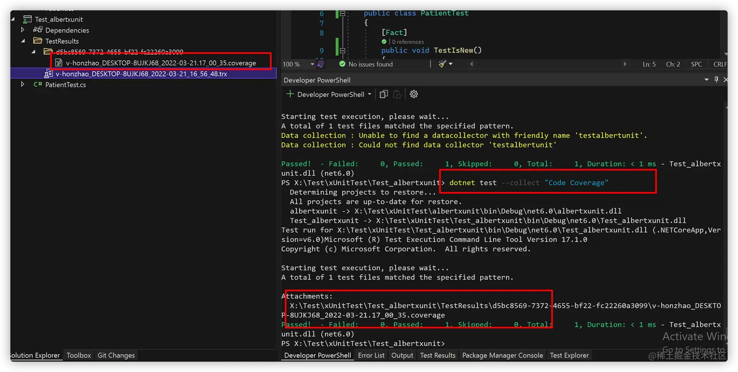 生成测试覆盖率文件 dotnet test --collect "Code Coverage"