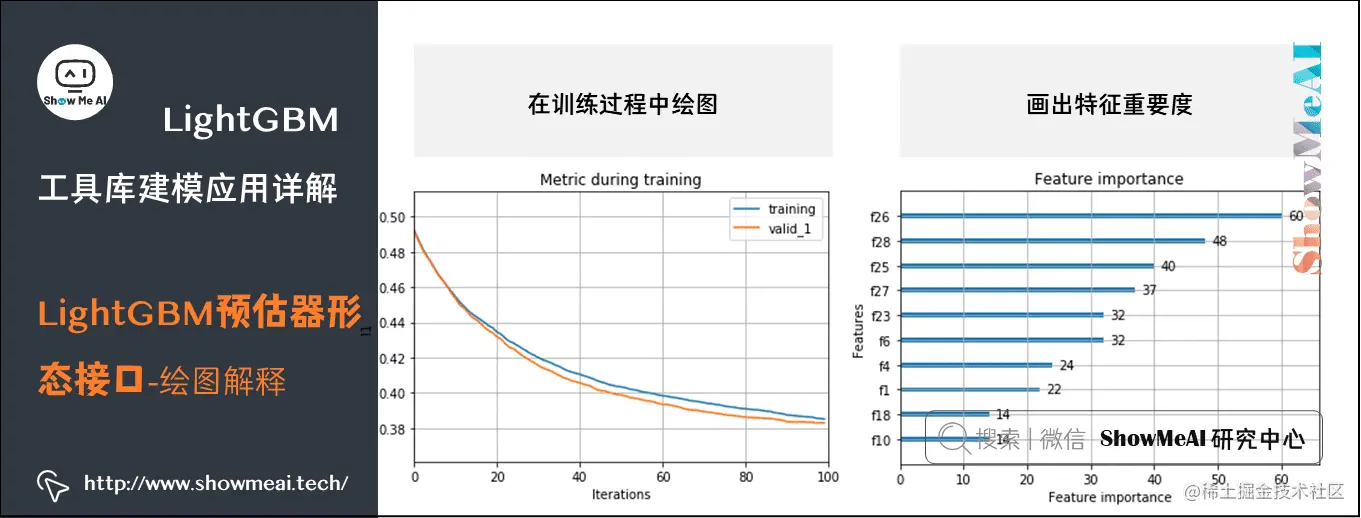 LightGBM支持对模型训练进行可视化呈现与解释,包括对于训练过程中的损失函数取值与评估准则结果的可视化、训练完成后特征重要度的排序与可视化、基学习器(比如决策树)的可视化。
