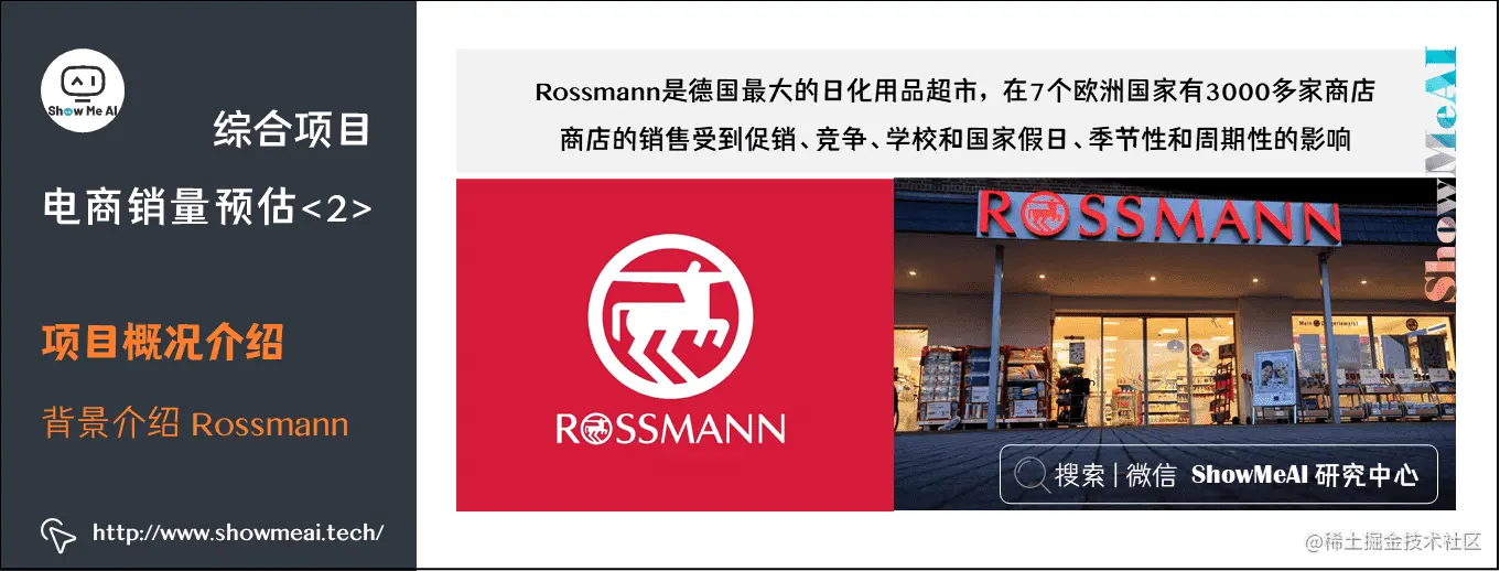 Rossmann成立于1972年,是德国最大的日化用品超市,在7个欧洲国家有3000多家药店。商店不定时会举办短期的促销活动以及连续的促销活动以此来提高销售额。除此之外,商店的销售还受到许多因素的影响,包括促销、竞争、学校和国家假日、季节性和周期性。