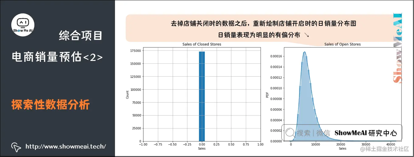 同样还是Rossmann这个场景问题,ShowMeAI在上一篇 机器学习实战 | Python机器学习综合项目-电商销量预估 里给大家讲解了基本的数据探索性分析、数据预处理和建模过程,本篇我们再来看看这些过程,对其中一些细节做一些优化。