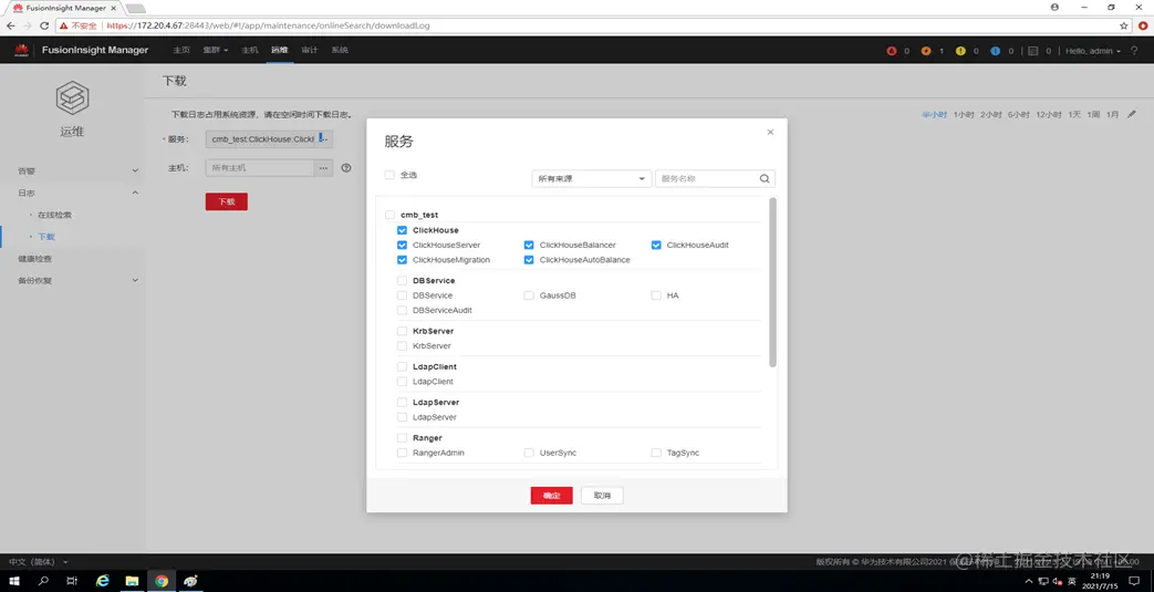 3.2 可视化日志下载:通过FI manager运维页面,可以选择日志下载、并可以选择下载的节点,以及下载的日志时间段,无需登录后台下载日志。