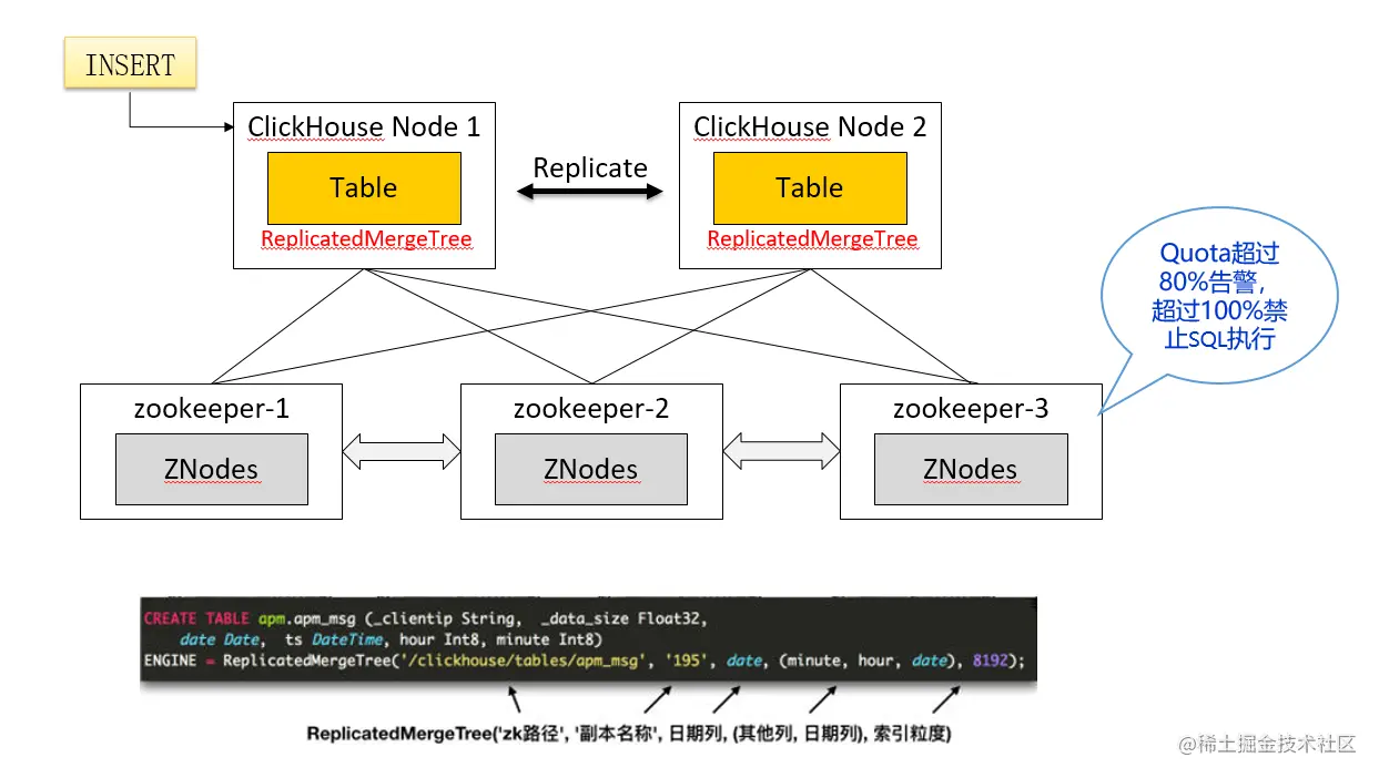 12.默认采用两副本方式、自动生成集群分片拓扑、zk防过载、阈值告警