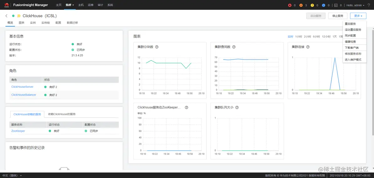 目前ClickHouse在国内外社区十分火热,大批厂家纷纷跟进并大规模投入使用,贡献大量成功案例。ClickHouse也在华为云内部多个产品中投入使用,如集团IT的自助分析和行为分析业务,电商平台等,集群总规模已经达到数千节点(多套物理集群)。同时,华为云FusionInsight MRS提供ClickHouse实时OLAP服务,其基于开源版本进行了多个方面的性能优化和功能增强,主要如下:
