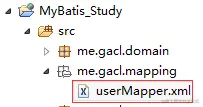创建一个me.gacl.mapping包,专门用于存放sql映射文件,在包中创建一个userMapper.xml文件,如下图所示: