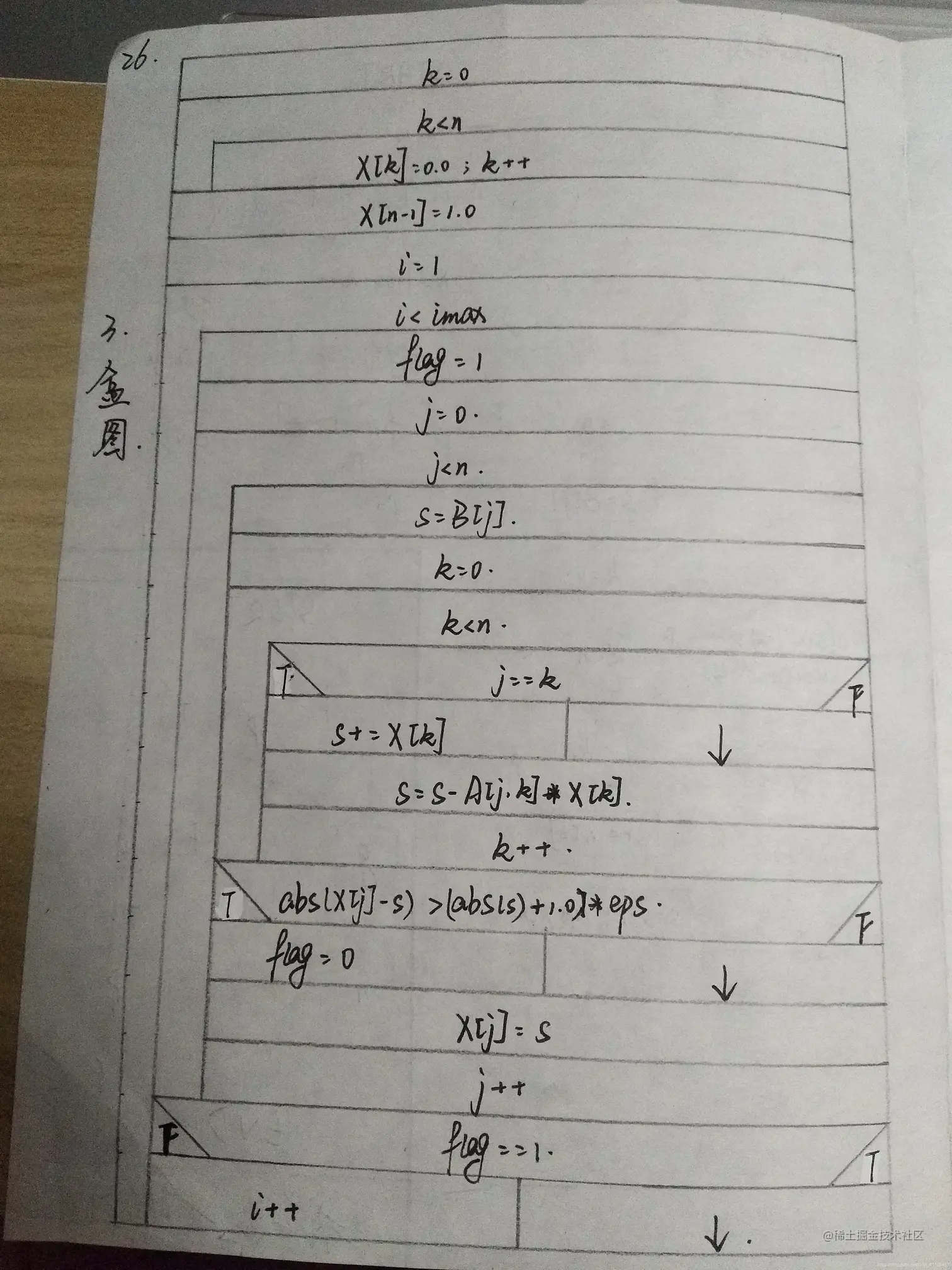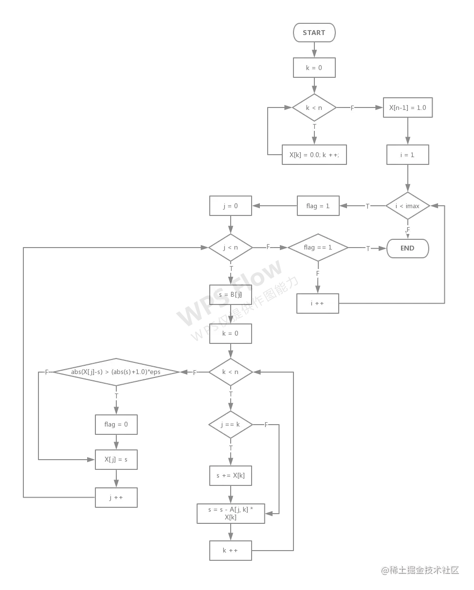 3.下面是一段用Seidel迭代法求解线性方程组的程序。其中A[n,n]是方程组的系数矩阵。B[n]是方程组的右端项,X[n]是方程组的解向量。eps是控制迭代精度的较小实数。imax是控制迭代的最大次数。flag是标志,值为0时表示迭代不收敛,值为l时表示迭代收敛。