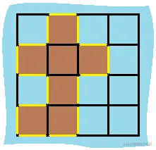 解释: 它的周长是上面图片中的 16 个黄色的边