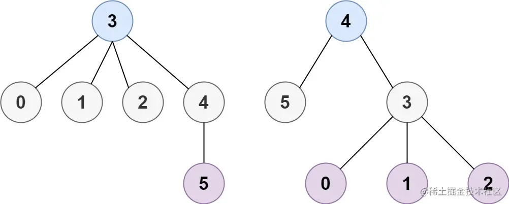 输入: n = 6, edges = [[3,0],[3,1],[3,2],[3,4],[5,4]]