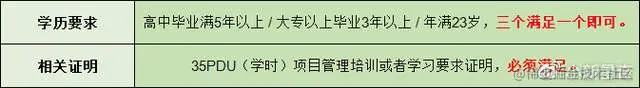 第二类:不具有学士学位或同等大学学历或以下者:满足以上的学历的报考考试需要有7500小时的项目管理经验。
