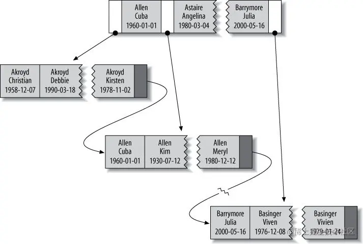 虽然这是一个货真价实的索引,但是实际的数据库系统几乎没有使用二叉查找树或其进化品种红黑树(red-black tree)实现的,原因会在下文介绍。