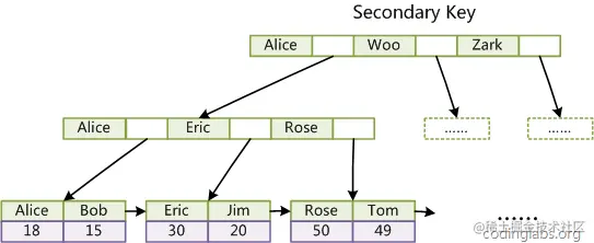 这里以英文字符的ASCII码作为比较准则。聚集索引这种实现方式使得按主键的搜索十分高效,但是辅助索引搜索需要检索两遍索引:首先检索辅助索引获得主键,然后用主键到主索引中检索获得记录。
