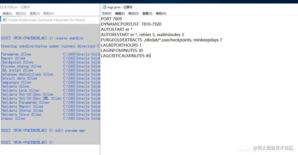 LAGREPORT、LAGINFO、LAGCRITICAL: 定义数据延迟的预警机制:本处设置表示MGR进程每隔1小时检查EXTRACT的延迟情况,如果超过了30分钟就把延迟作为信息记录到错误日志中,如果延迟超过了45分钟,则把它作为警告写到错误日志中。