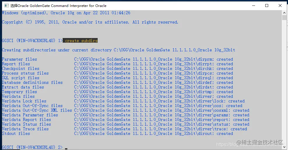 在ogg控制台输入命令:create subdirs,初始化目录。创建其需要用到的目录\