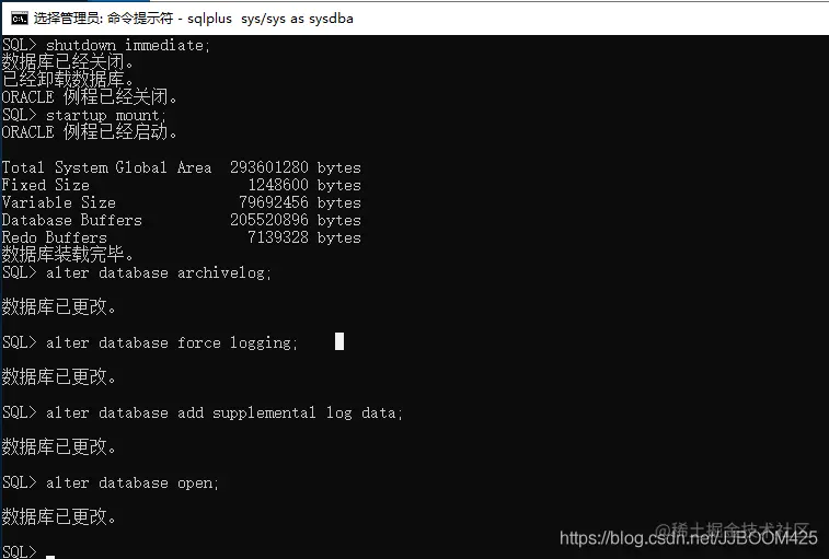SQL> alter database archivelog; //更改数据库为归档模式