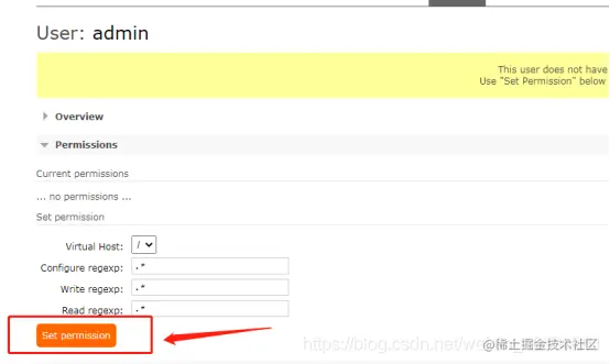 此时看到admin是No access的,需要设置一下。点击name下面的admin,然后再点击Set permission即可。