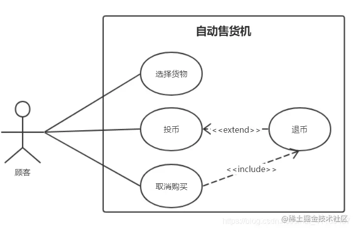 向一个用例中添加一些动作后构成了另一个用例,二者即为扩展关系,后者继承前者的一些行为,通常称后者为扩展用例。