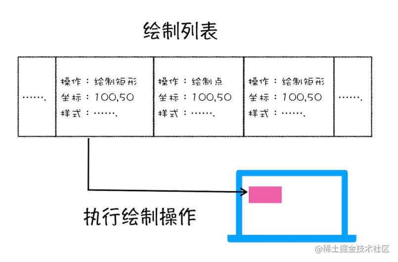 渲染引擎实现图层绘制和这个例子差不多,把图层绘制拆分成很多小的绘制指令。如下图,可以看出绘制的指令比较简单。