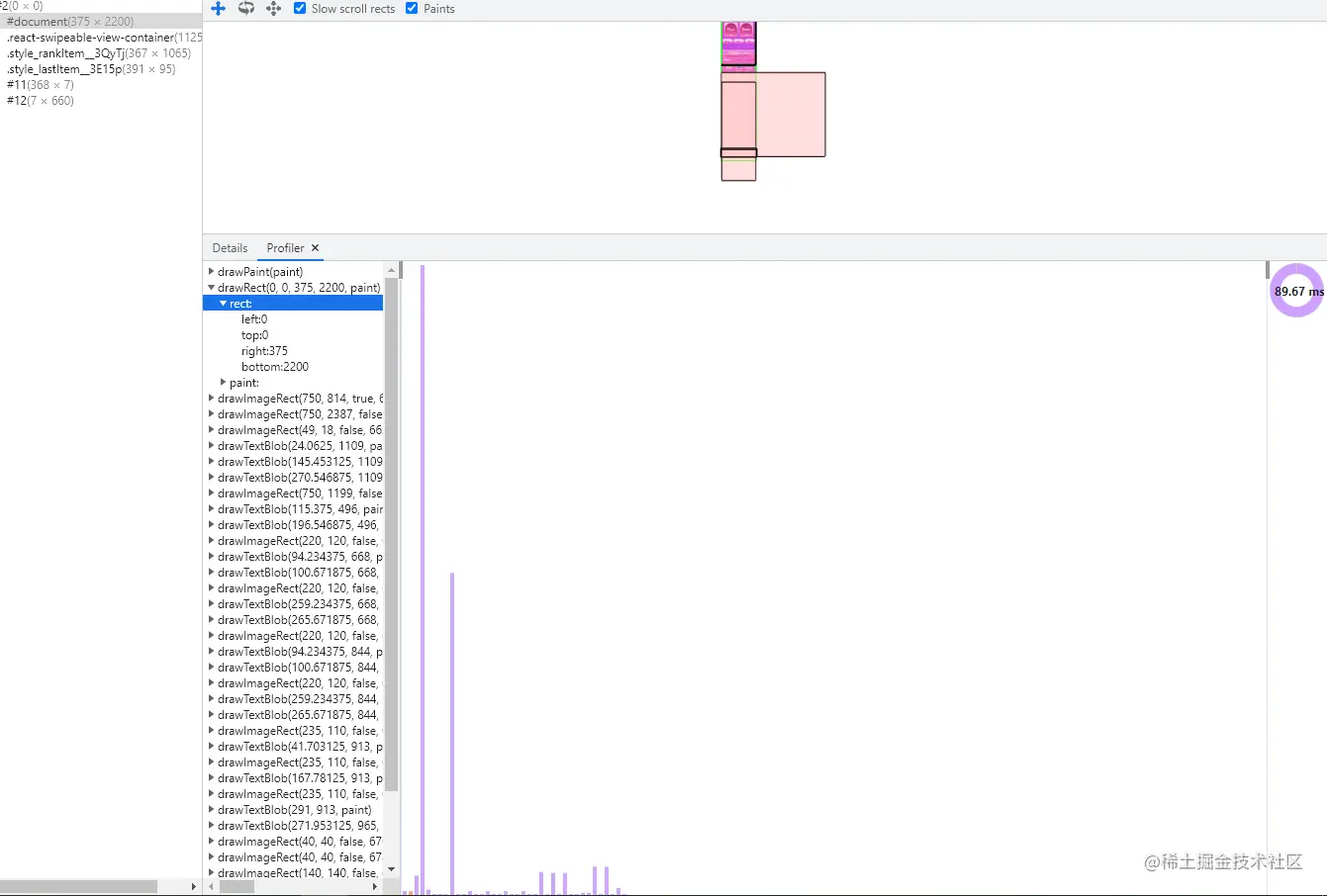 在Chrome开发者工具,打开"Layers",选择“document”层,就可用看到绘制指令的列表。