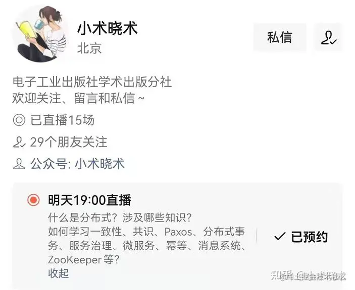 前往**“小术晓术”视频号**预约直播,3月23日晚7:00,本书作者易哥与您分享书中分布式系统的各种小知识点~