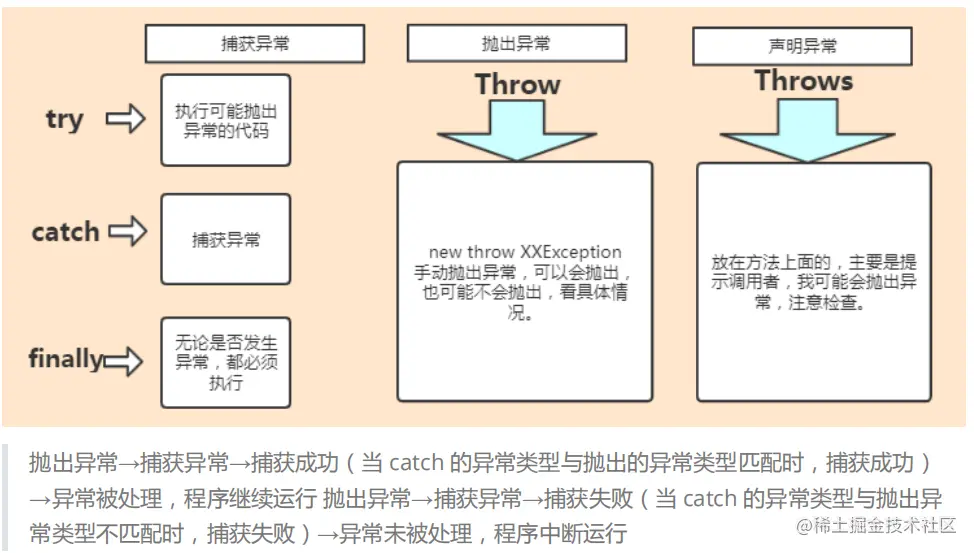 - catch块负责捕获可能出现的异常,并进行处理。