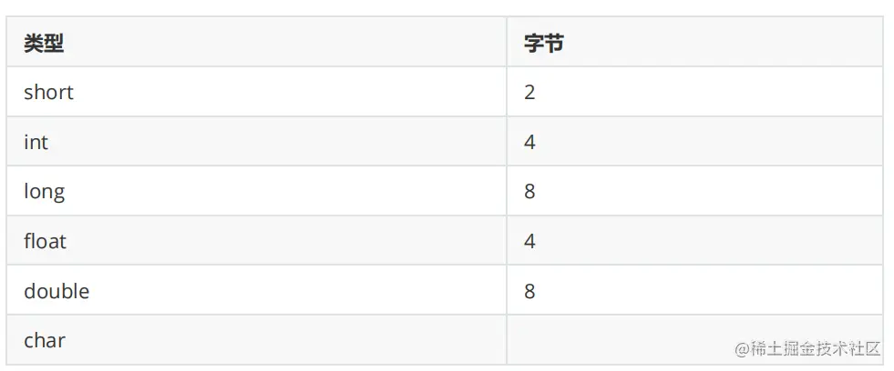 31. Java中基本数据类型占用的字节数