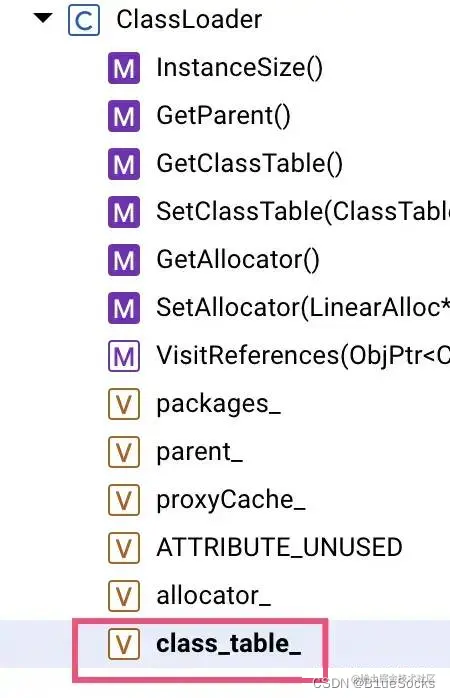每个 ClassLoader 有一个 class_table_,它的成员主要是一个 ClassSet vector: