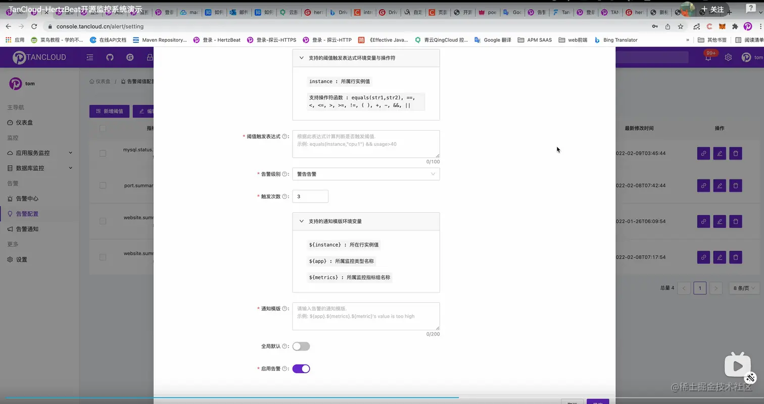 HertzBeat 赫兹跳动 是由 Dromara 社区孵化, TanCloud 开源的一个支持网站, API , PING ,端口,数据库,操作系统等监控类型,拥有可视化操作界面的开源监控告警项目。