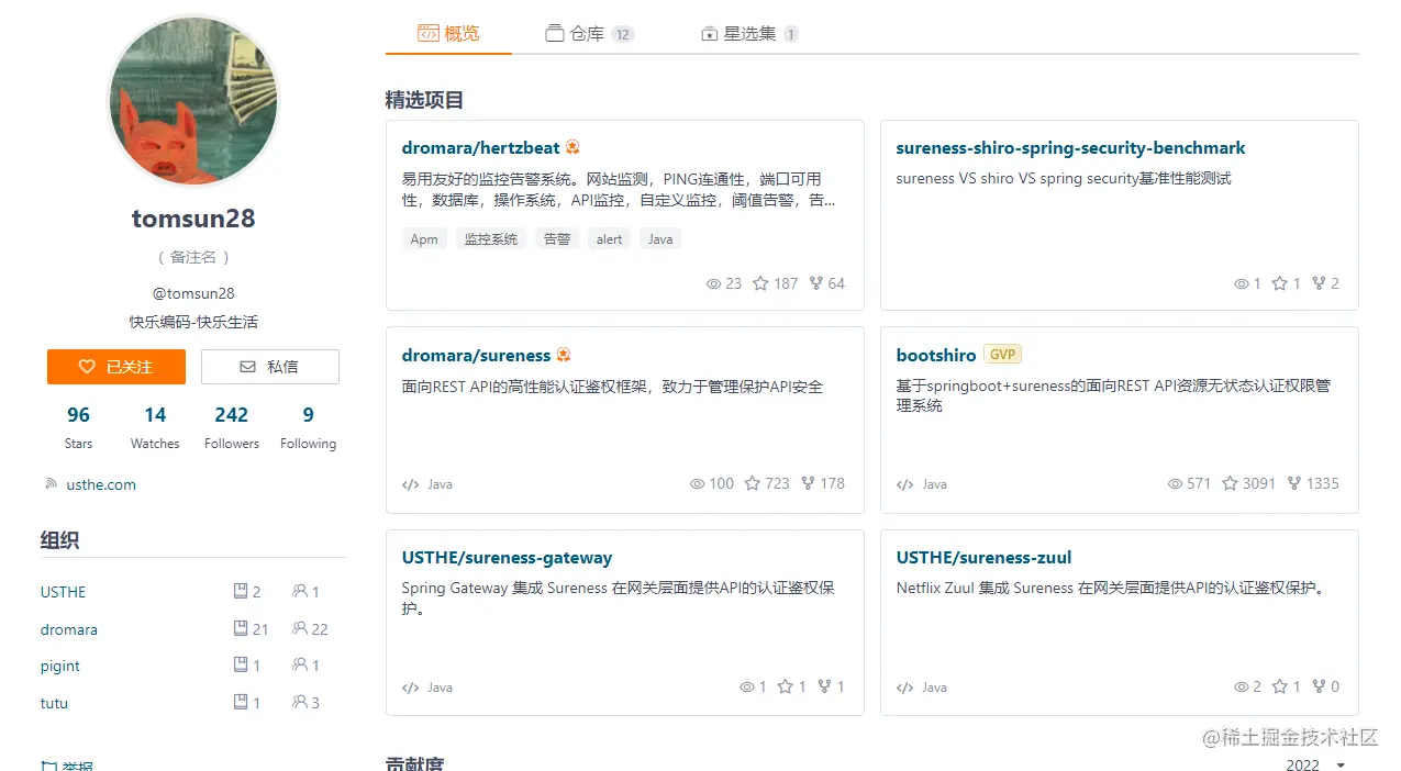 从他个人的网络自述上得知,这位大佬目前时全职做开发,至今做了多款开源项目,譬如 Dromara 开源社区 中的 Sureness ;GVP 项目 Bootshiro 等。此前,大佬就已深耕 APM 领域多年, 因对开源的热带,2021 年裸辞后,全职专注开源,此次创业和开源的方向也是老本行监控系统。