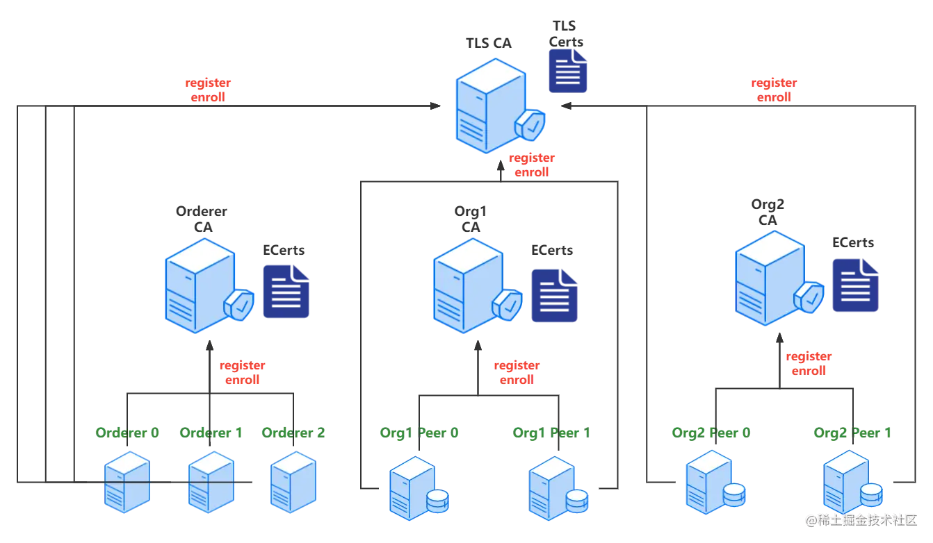 注册 TLS CA 管理员,注册节点身份