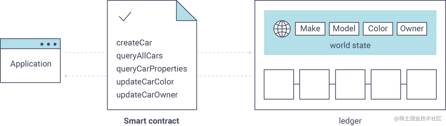 编写一个应用程序来连接到 fabrc 网络中,通过调用智能合约来访问账本.