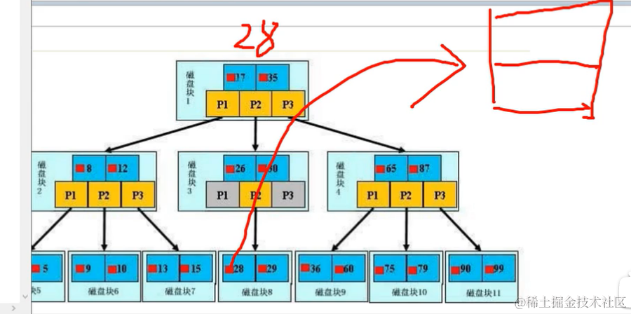 如果要查询23,在左边数据表,要一个一个对比,查询很多次才能查到;