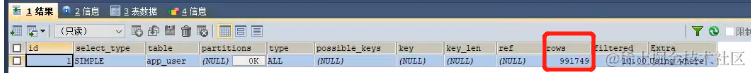 -- 下图执行结果,rows = 991749,执行99万行才找到它