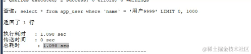 SELECT * FROM app_user WHERE name = '用户9999' -- 1.098 sec