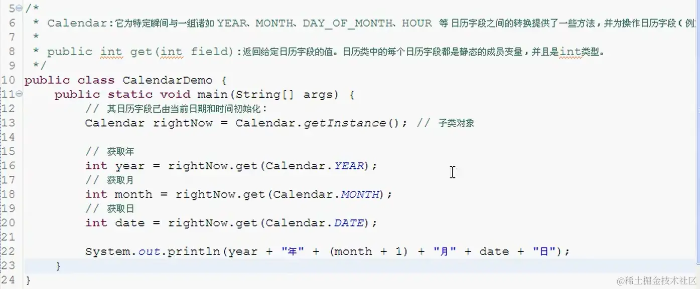 返回给定日历字段的值。日历类中的每个日历字段都是静态的成员变量,并且是int类型