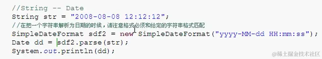 在把一个字符串解析为日期的时候,请注意格式必须和给定的字符串格式匹配