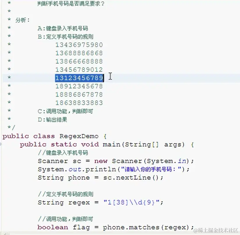 public boolean matches(String regex) 告知此字符串是否匹配给定的正则表达式。 -