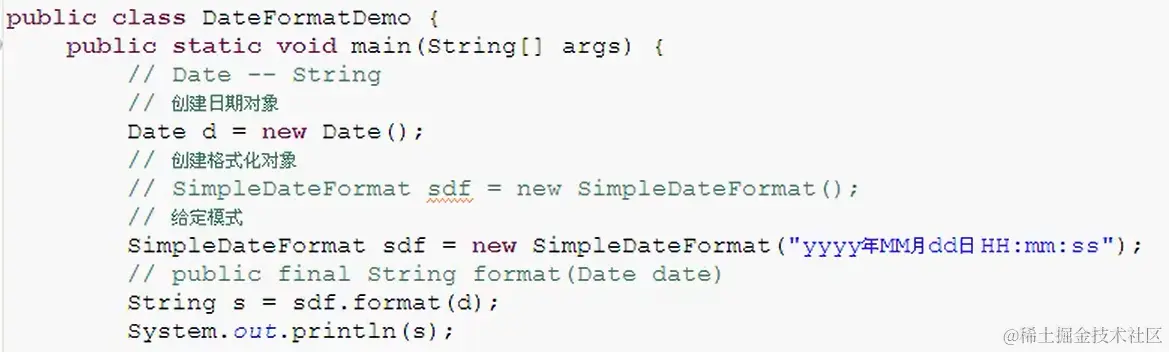 - 用默认的模式和默认语言环境的日期格式符号构造 SimpleDateFormat。